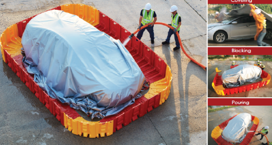 Kerfið má nota til að mynda tímabundna vatnstanka sem nýtast við að kæla og bæla niður eld í rafbílum eða litíum-jón rafhlöðum.