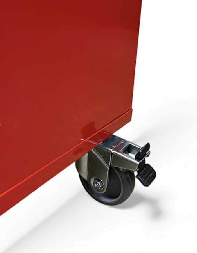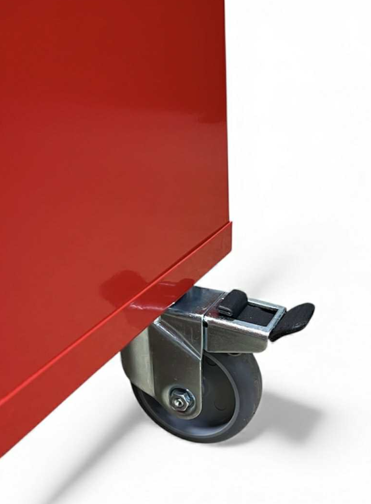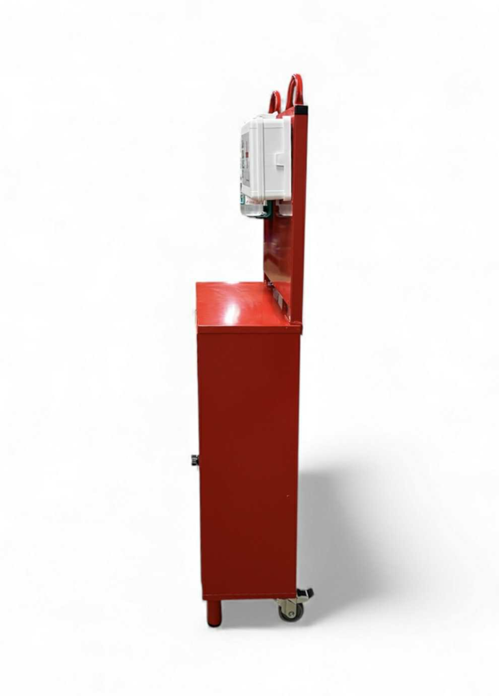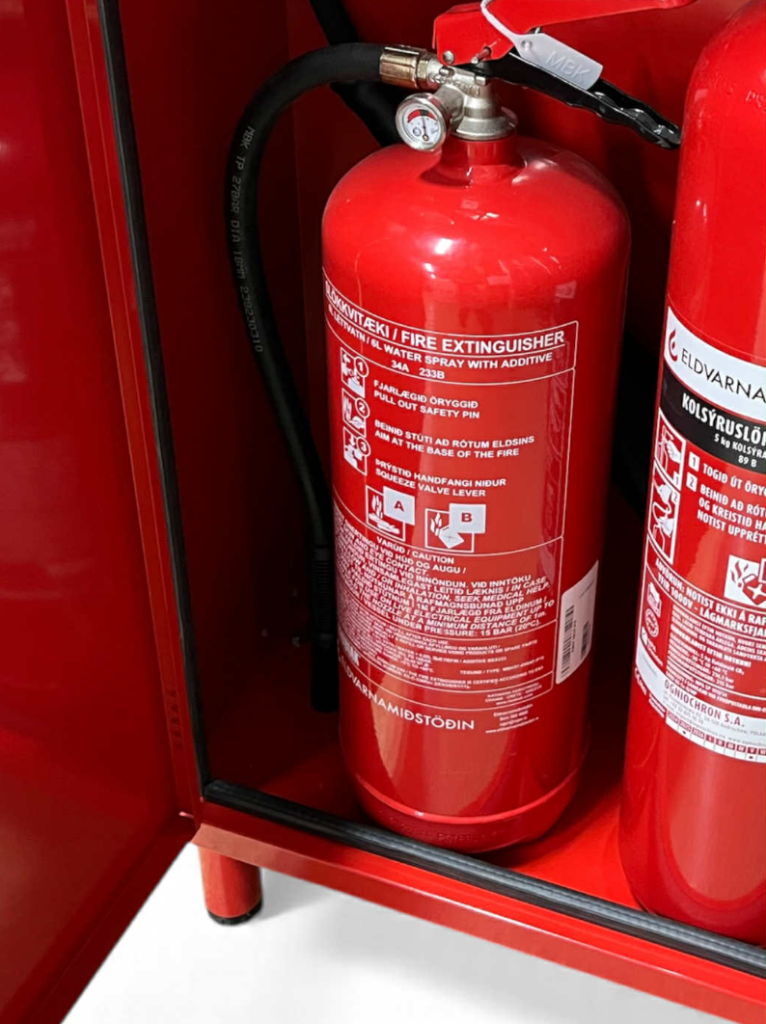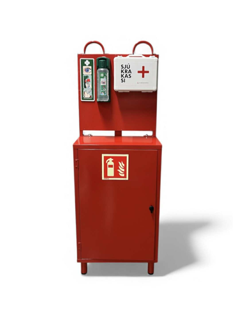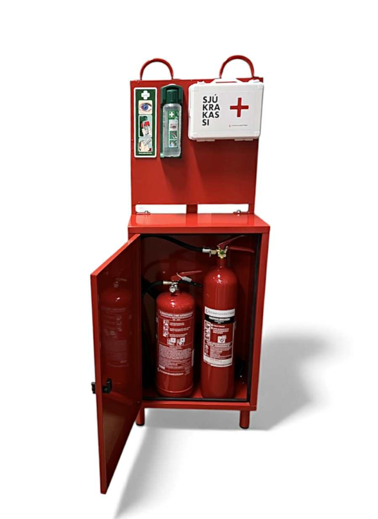 Skápur f/ slökkvitæki á hjólum