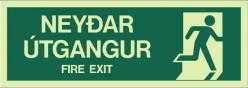 Sjálflýsandi 12x34sm neyðarmerki/öryggismerki merkt Neyðarútgangur - Fire Exit.