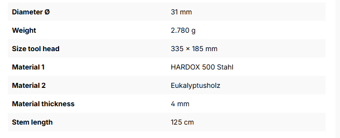 • Herðað efni í hrífu og endurbætt vinnuvistfræði skafts samkvæmt nýjustu stöðlum US Forest Service