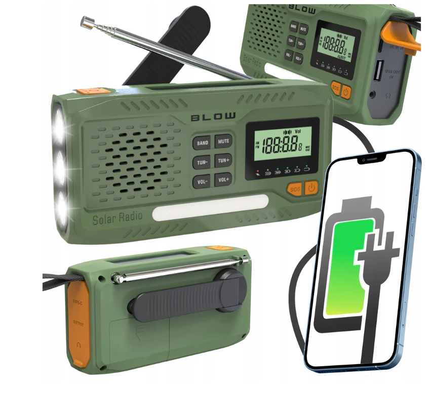 Neyðarsútvarp með sólarsellu og Dynamo-sveif.